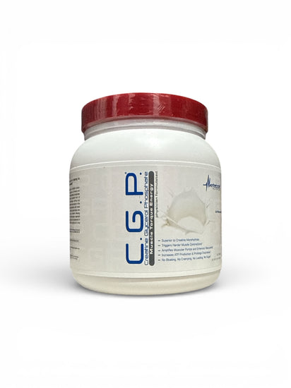 DESCRIPTION The unique phosphate-bonded creatine in C.G.P. has an unparalleled advantage in its delivery by using an additional glycerol bond to facilitate rapid absorption. C.G.P. delivers a high energy boost to your ATP supply to help delay fatigue and maximize strength development.*