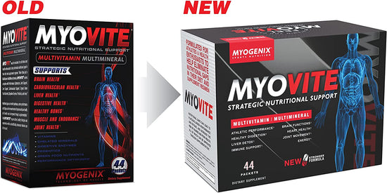 MYOVITE was formulated for athletes and health enthusiasts to help eliminate nutritional gaps in their diet and supplement regimen. More than just a MultiVitamin MultiMineral formula, MYOVITE comes complete with Performance Optimizers, Joint Support, Liver Support, Cardiovascular Support, Organic Green Food Nutrients, Digestive Enzymes, Probiotics, and more.* Nutritional gaps can lead to plateaus, underperformance and fatigue, and increase the risk of injuries and poor health, all of which can be improved through supplementation.* Add MYOVITE to your active, healthy lifestyle and experience what a scientifically advanced vitamin can do for you.